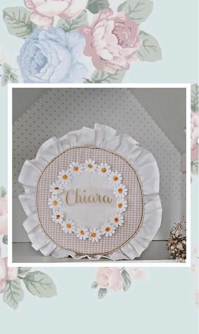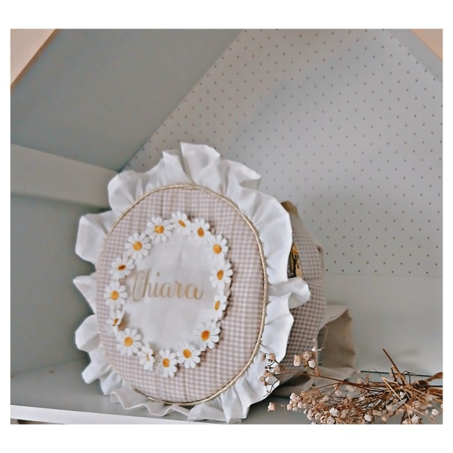 Médaillon en double gaze orné d'un joli galon marguerites.
