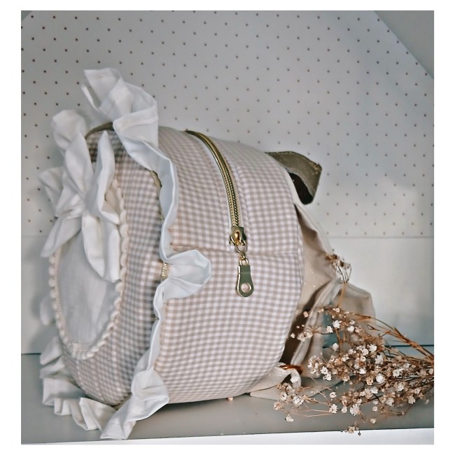 Sac rond en vichy vous avec le choix entre la version sac àdos , bretelles réglables avec des anneaux coulissants , ou bien en version bandoulière.