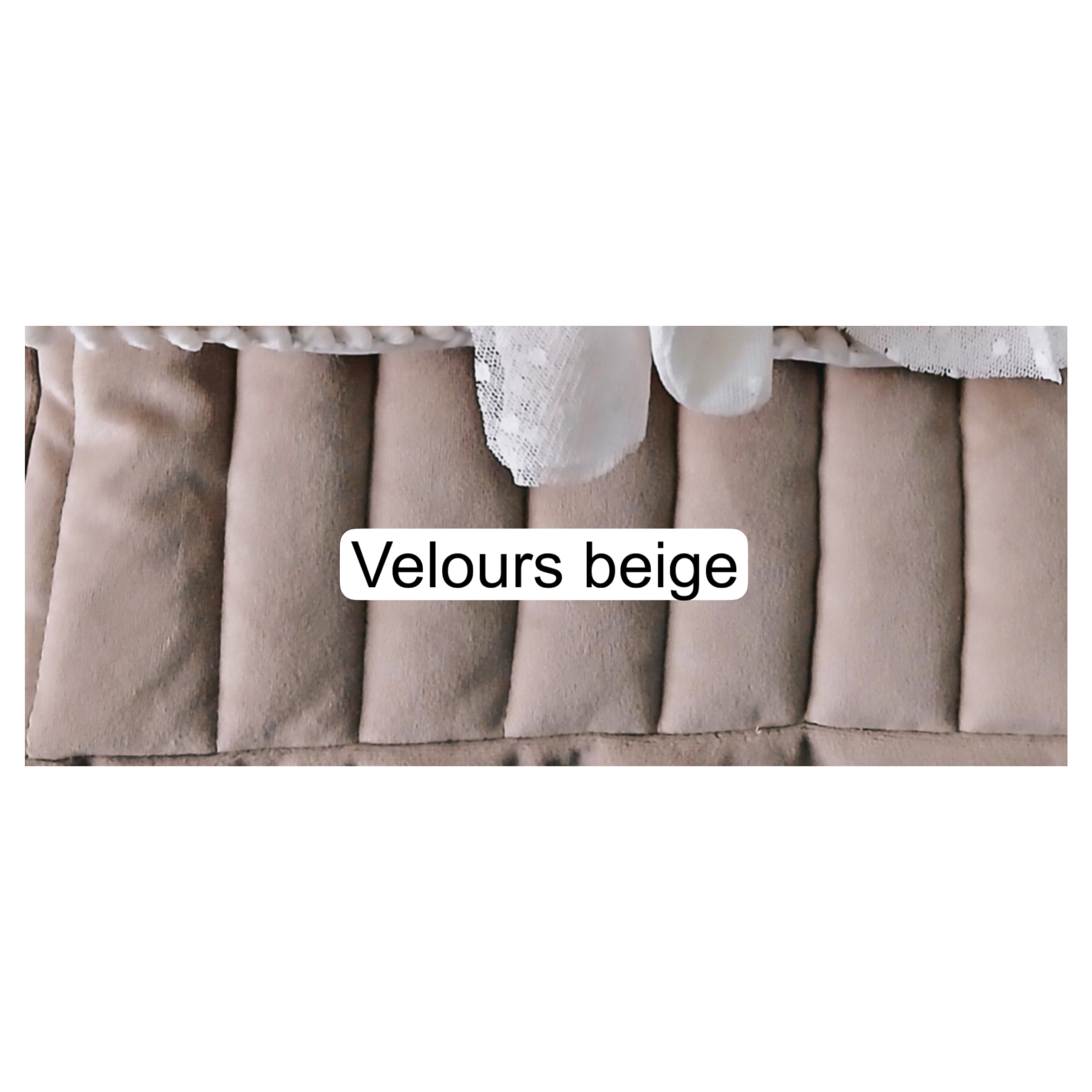 Ce produit est personnalisable avec du flex doré et se décline en plusieurs couleurs velours ivoire, velours beige et velours rose