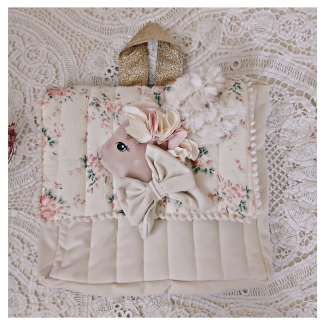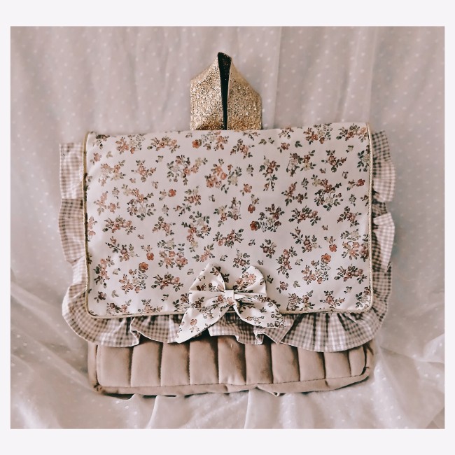 Le mini cartable et le sac à dos se ferment avec un bouton aimanté.